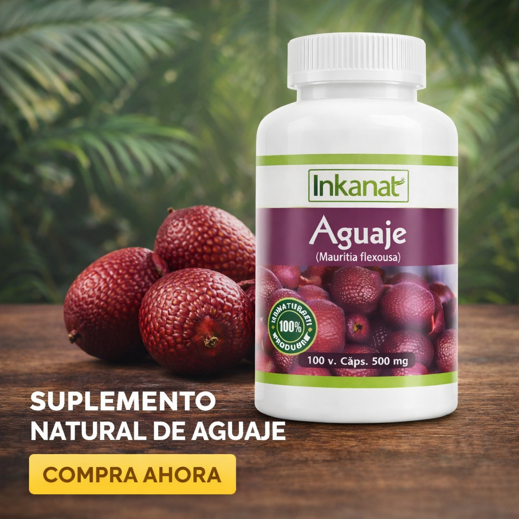 Aguaje Inkanat® es un suplemento natural elaborado a partir del fruto amazónico Mauritia flexuosa, reconocido por su alto valor nutricional.