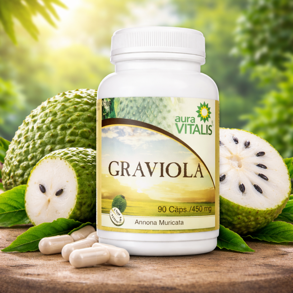 Graviola (Annona muricata) en cápsulas es un suplemento natural de origen vegetal, elaborado a partir de pulpa deshidratada de graviola. Tradicionalmente utilizada para apoyar el sistema inmunológico, favorecer la limpieza interna y contribuir al bienestar general del organismo. Producto chileno, presentación de 90 cápsulas de 450 mg cada una.