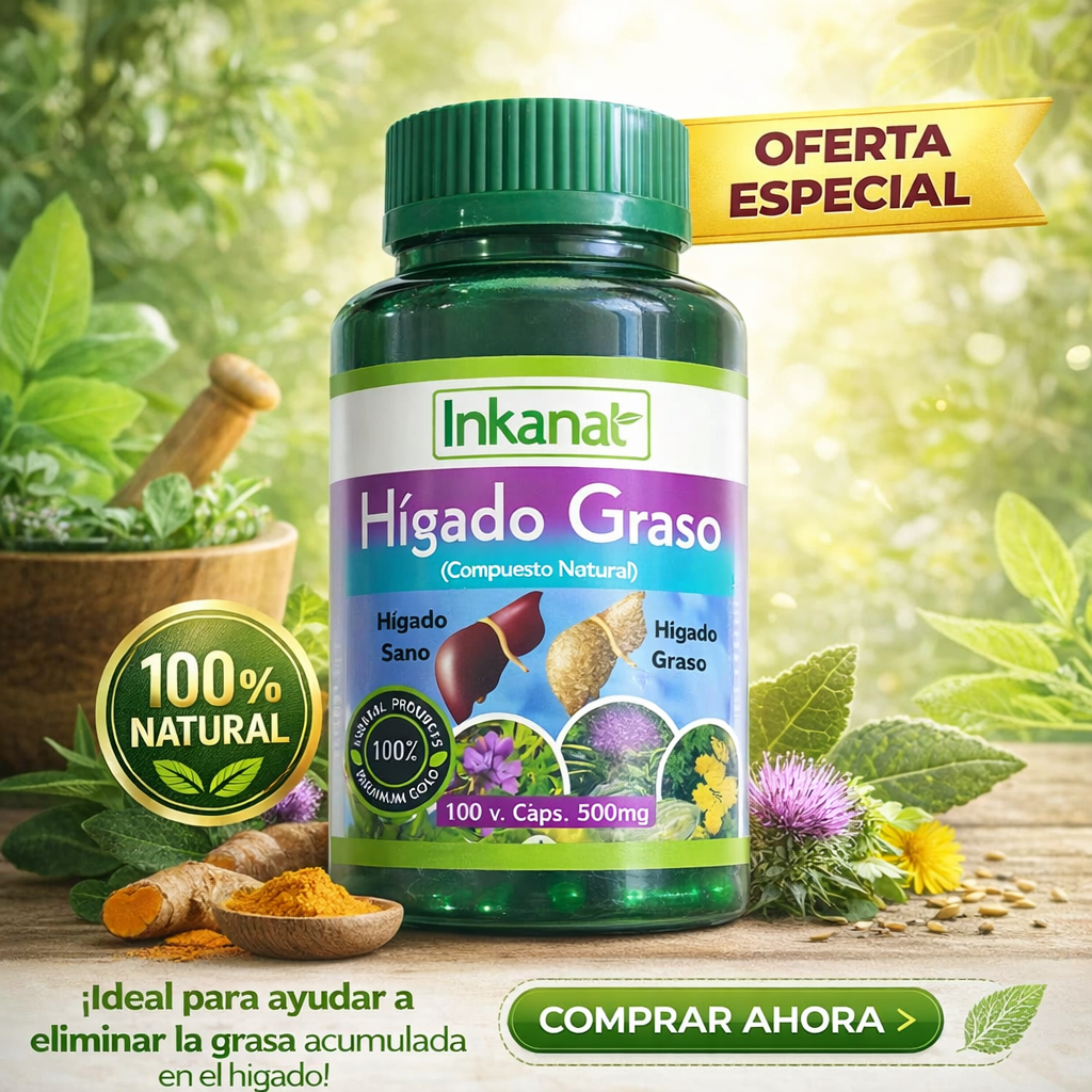 Hígado Graso Inkana® es un complemento alimenticio natural formulado para apoyar la salud del hígado y favorecer la reducción de la acumulación de grasa hepática. Su combinación de plantas medicinales tradicionales contribuye a la depuración del organismo, al buen funcionamiento hepático y a la regulación del metabolismo de las grasas.