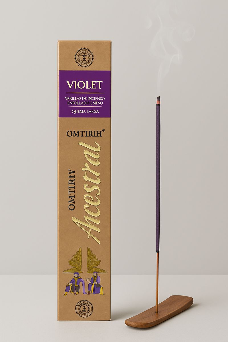 Incienso artesanal de violeta, enrollado a mano y de quema larga, ideal para crear ambientes de calma y armonía.