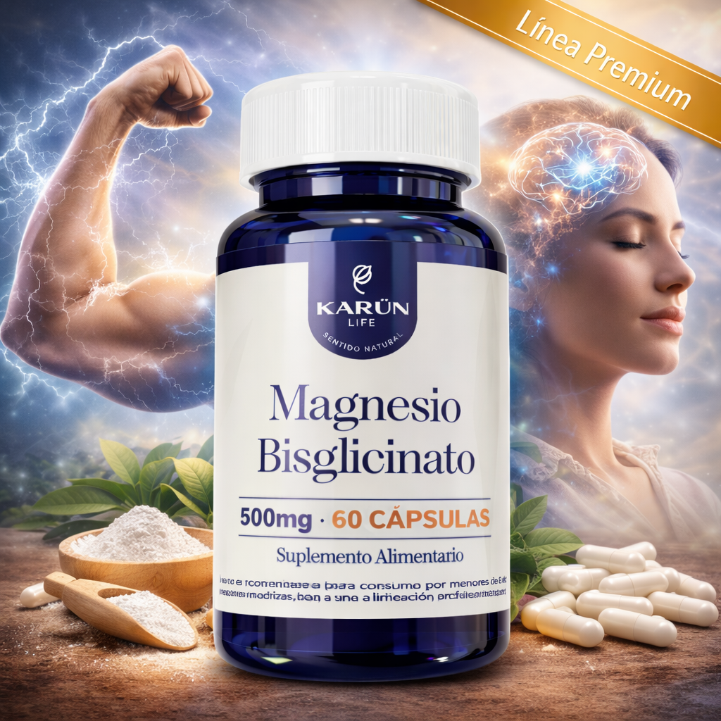El Magnesio Bisglicinato Karün Life es un suplemento alimentario de alta biodisponibilidad, formulado para apoyar la función muscular, el sistema nervioso y el bienestar general. Su forma bisglicinada permite una mejor absorción y tolerancia digestiva, siendo ideal para personas con estrés, tensión muscular, fatiga o dificultad para relajarse.