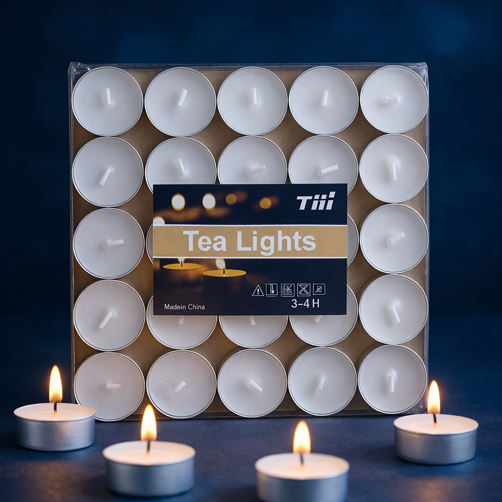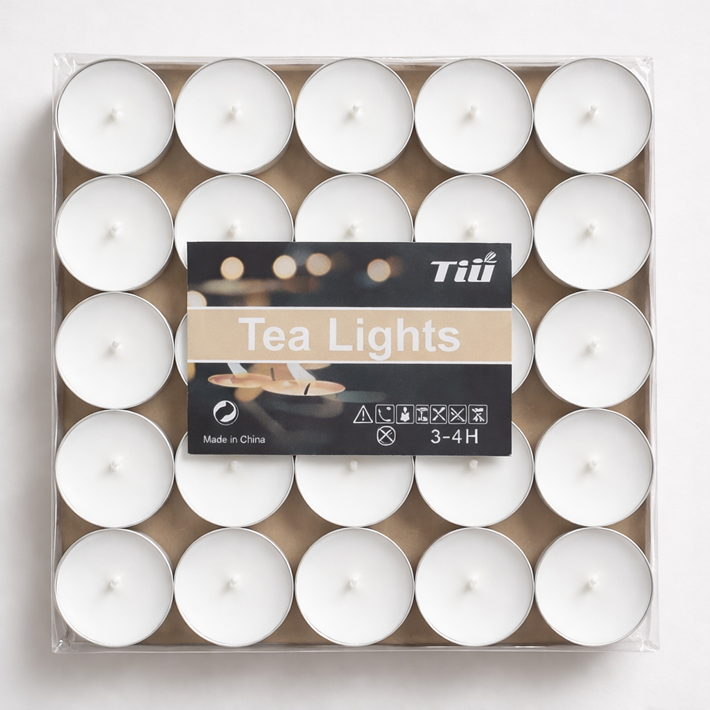 Pack de 50 velas Tea Light color blanco, ideales para rituales de limpieza energética, paz y protección.