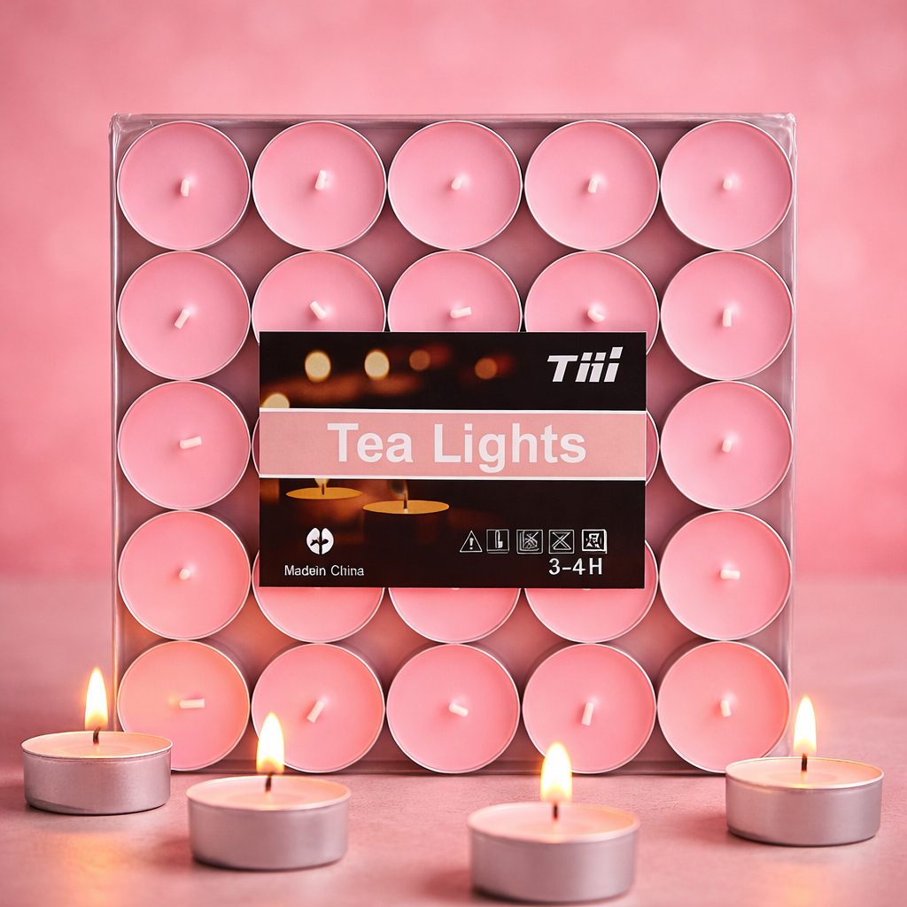 Pack de 50 velas Tea Light color rosado, ideales para crear ambientes de amor, dulzura, contención emocional y armonía afectiva. Perfectas para rituales energéticos, meditaciones, ceremonias, decoración de altares o uso decorativo en el hogar.