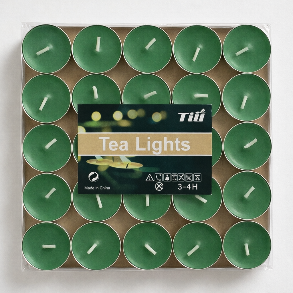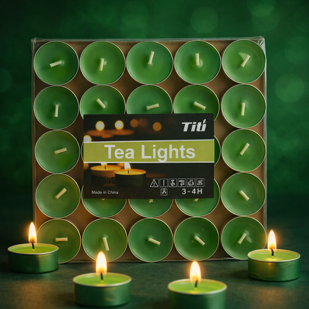 Pack de 50 velas Tea Light color verde, ideales para crear ambientes de equilibrio, sanación, prosperidad y conexión con la naturaleza. Perfectas para rituales energéticos, meditaciones, ceremonias, decoración de altares o uso decorativo en el hogar.