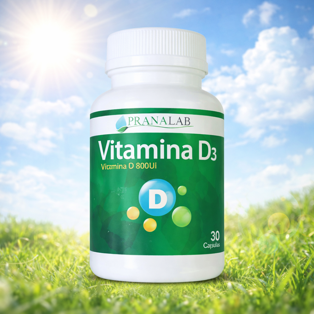 Suplemento alimenticio de Vitamina D₃ 800 UI en cápsulas, formulado para el consumo diario y fácil de incorporar a la rutina diaria.